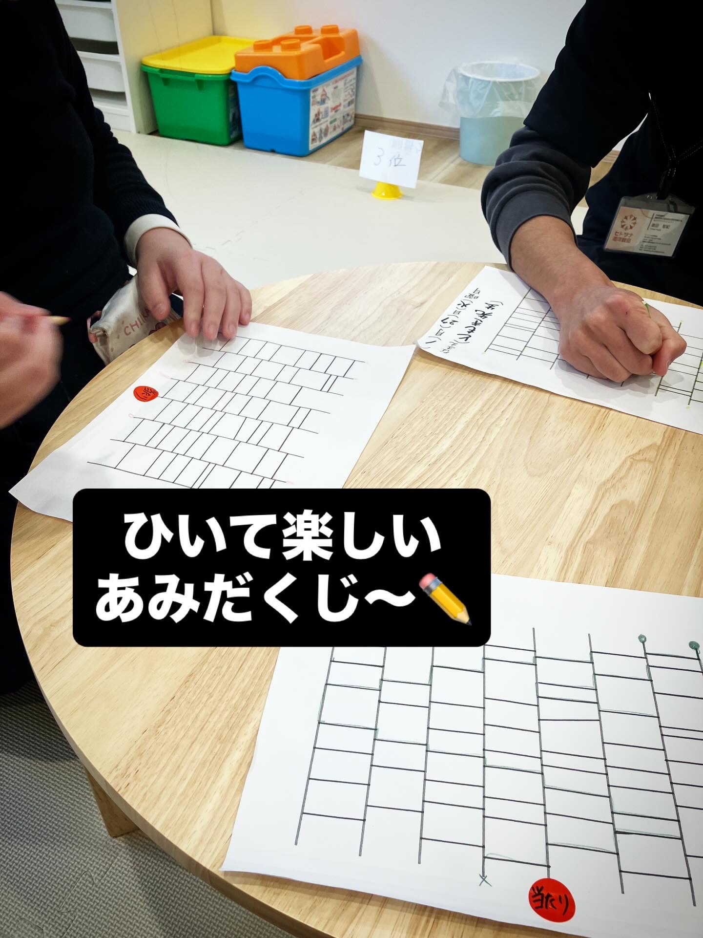 まずはあみだくじに挑戦!当たりが出るまで何度も線をなぞり、粘り強く取り組む姿がとても良かったです。 続くトランプの7ならべでは、数字の順番を意識してカードを並べていきました。途中で「カードが足りない!」というハプニングもありましたが、「もう一回!」とリベンジ。最後は見事に全てのカードを並べきることができました👏✨